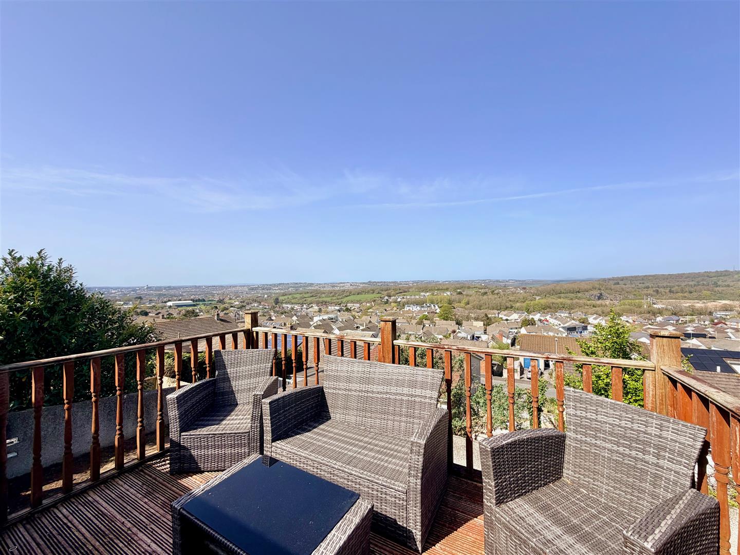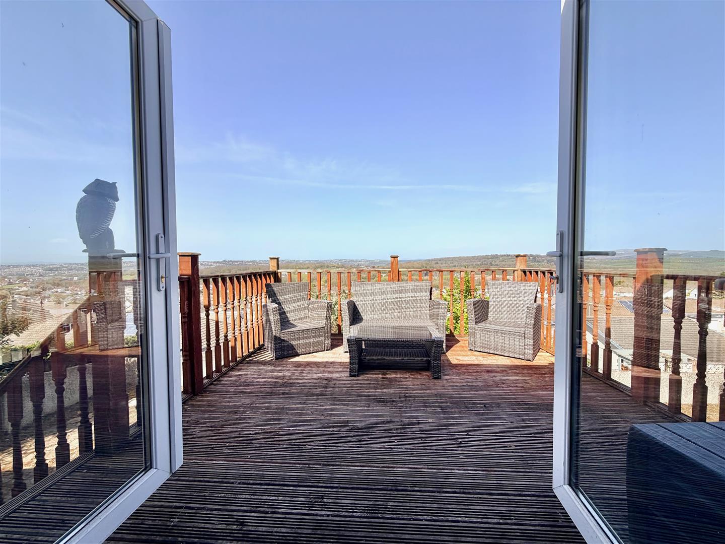 A spacious dual aspect open-plan reception room with windows to 2 elevations together with French doors opening onto the timber balcony. From the windows and doors there are incredible panoramic views sweeping around from Plymouth Sound across Plymouth and Plymstock towards Dartmoor.