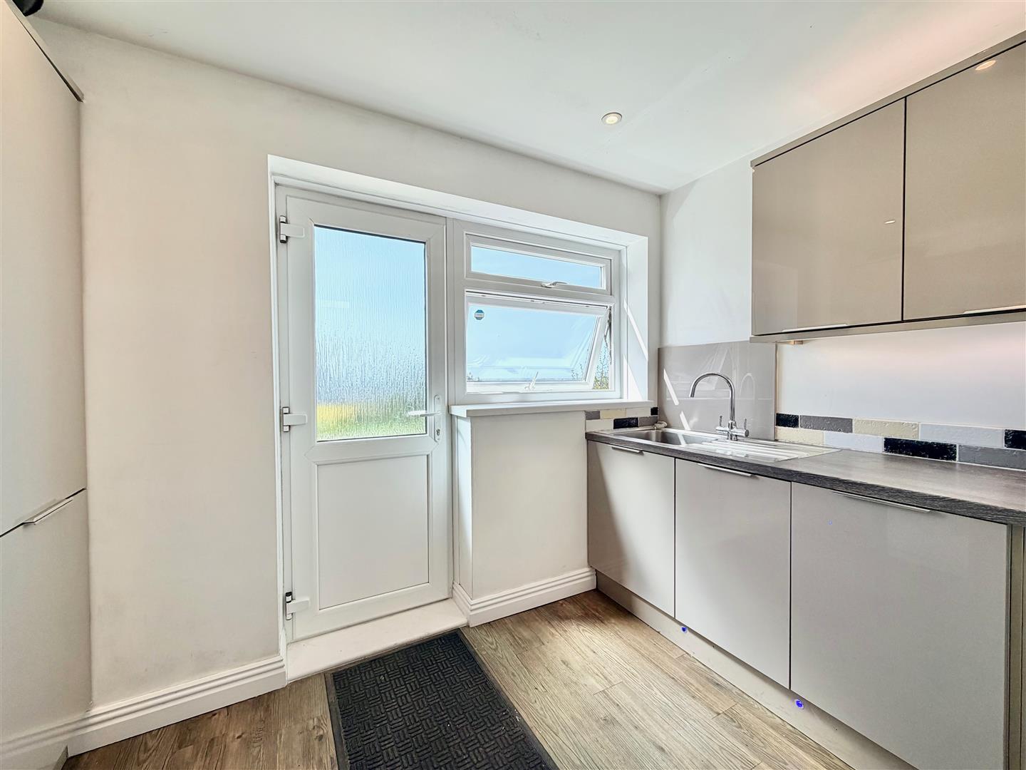 Matching cabinets with work surfaces and splash-backs. Stainless-steel single drainer sink unit. Space for washing machine and tumble dryer. Broom cupboard. Inset ceiling spotlights. Window with lovely views. Door leading to outside.