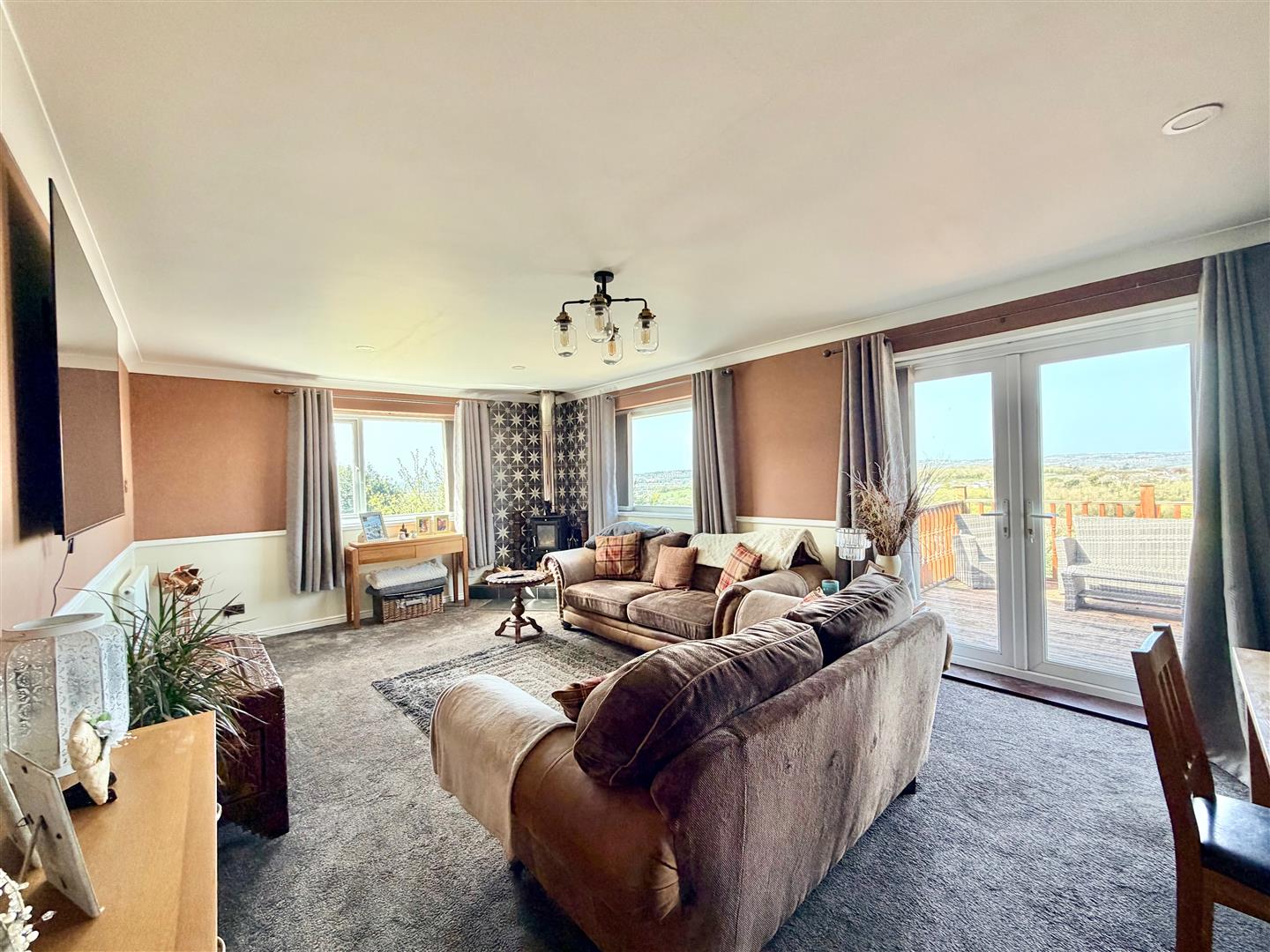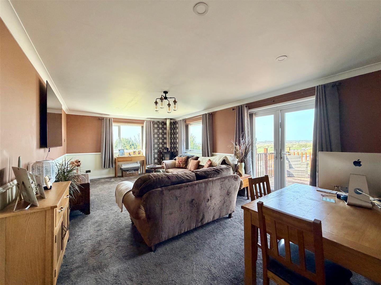 The bungalow is approached via a long driveway, which sets the property back from the road. The driveway leads to the double garage and provides plentiful off-road parking. Next to the double garage, is a further area of ground, which could be used for further off-road parking, if required. The remaining gardens are laid to lawn together with some mature shrubs. There are fantastic panoramic views, 2 outside taps, patio areas and a timber decked balcony. To the rear of the property, the boundary borders Dunstone Woods.
