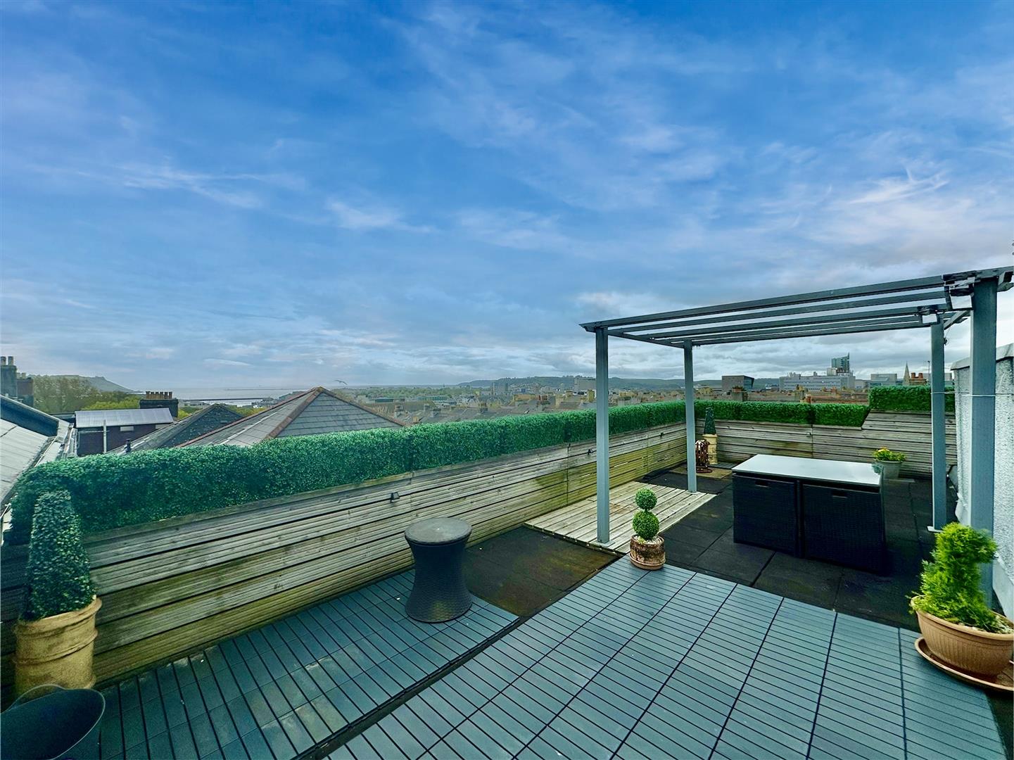29' long front garden. Long tenement courtyard some 8' wide and at the rear, a walled level courtyard 21'6 wide by 31' long - providing space for parking for four cars. Accessed from the second floor landing is a ROOF GARDEN 32' x 12'4 approx, with far reaching panoramic views to Plymouth Sound and the western approaches.