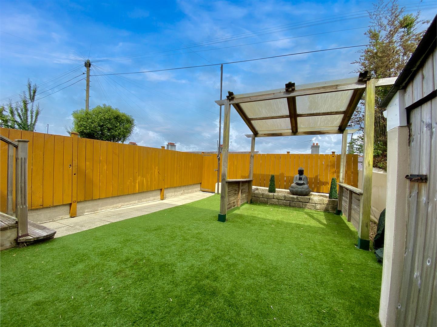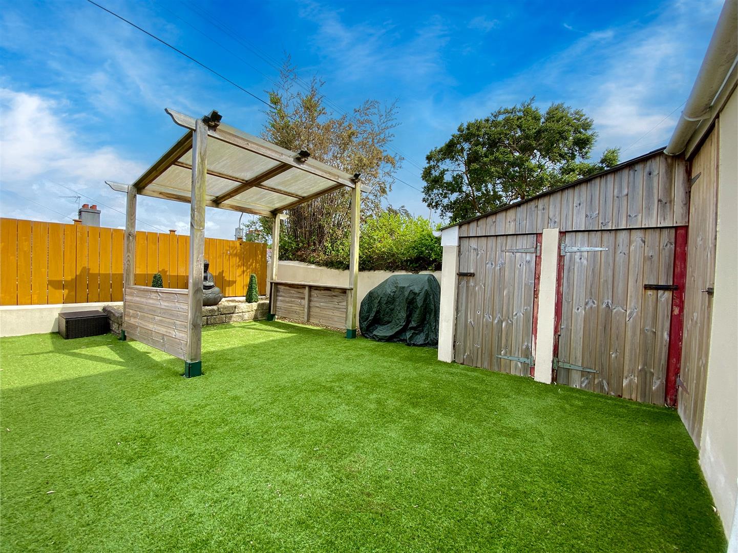 A wrought iron gate gives access to the front garden and path that leads to the front door. To the rear is a lovely space to entertain family and friends in with a decked seating area, section of artificial grass, covered Pergola and doors to utility room and two storage sheds. Gated access to the service lane.