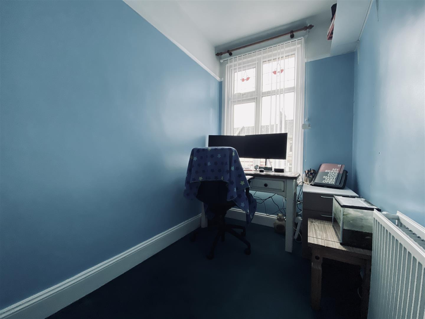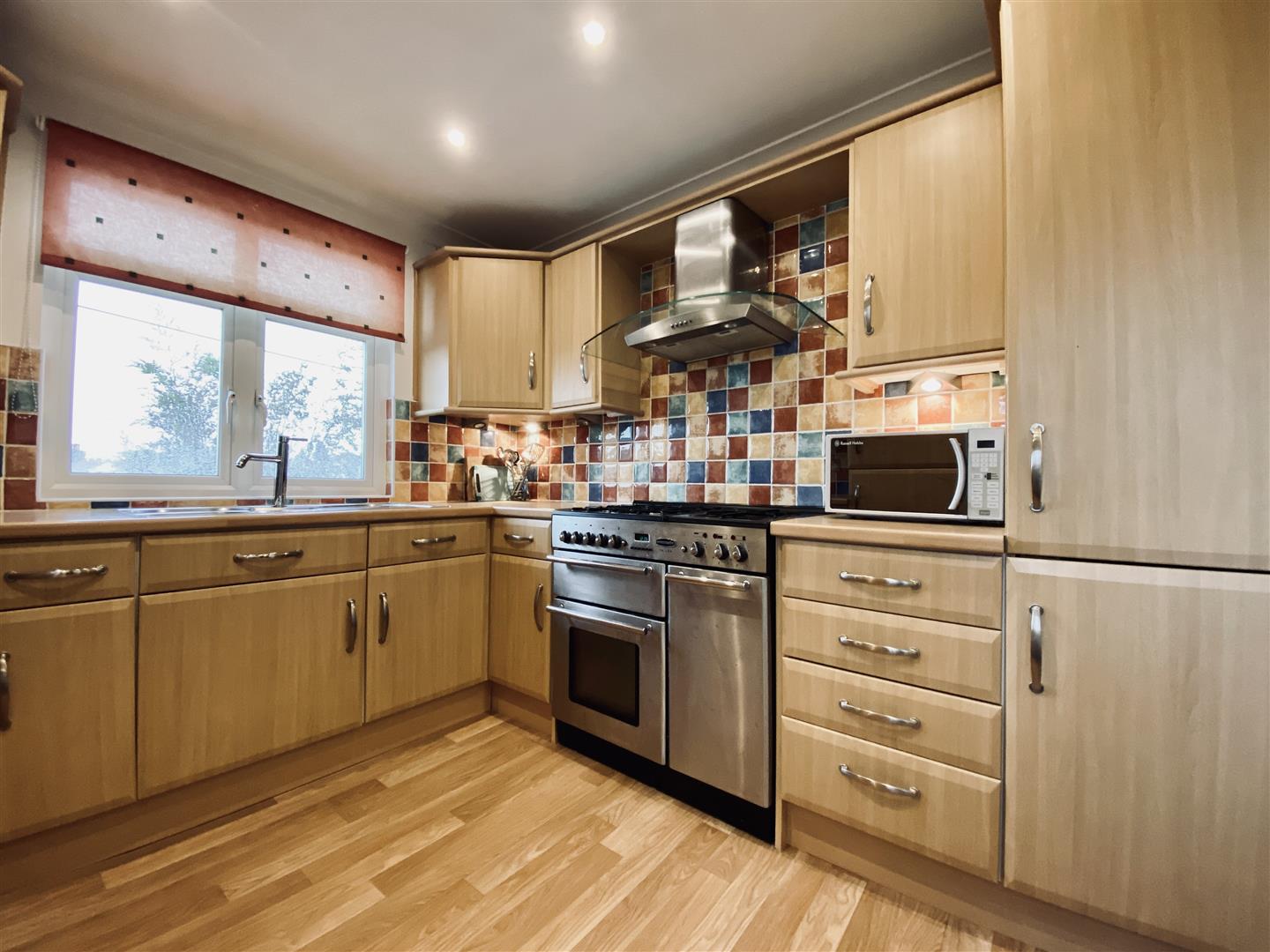 Matching base and wall mounted units with integrated fridge freezer, range cooker and dishwasher ( currently not working ). Roll edge laminate work surfaces have inset one and a half bowl sink unit with a mixer tap and tiled splash-backs. uPVC double glazed window to rear. Ceiling spotlights. uPVC obscured double glazed door opening out to the rear garden.