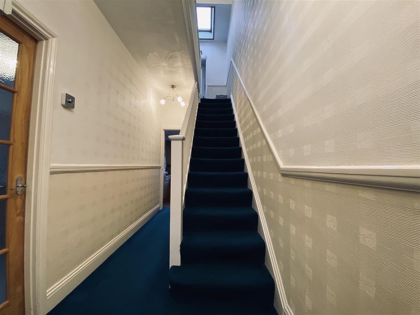 Staircase rising to the first floor landing with storage cupboard under. Doors into lounge, dining room and kitchen.