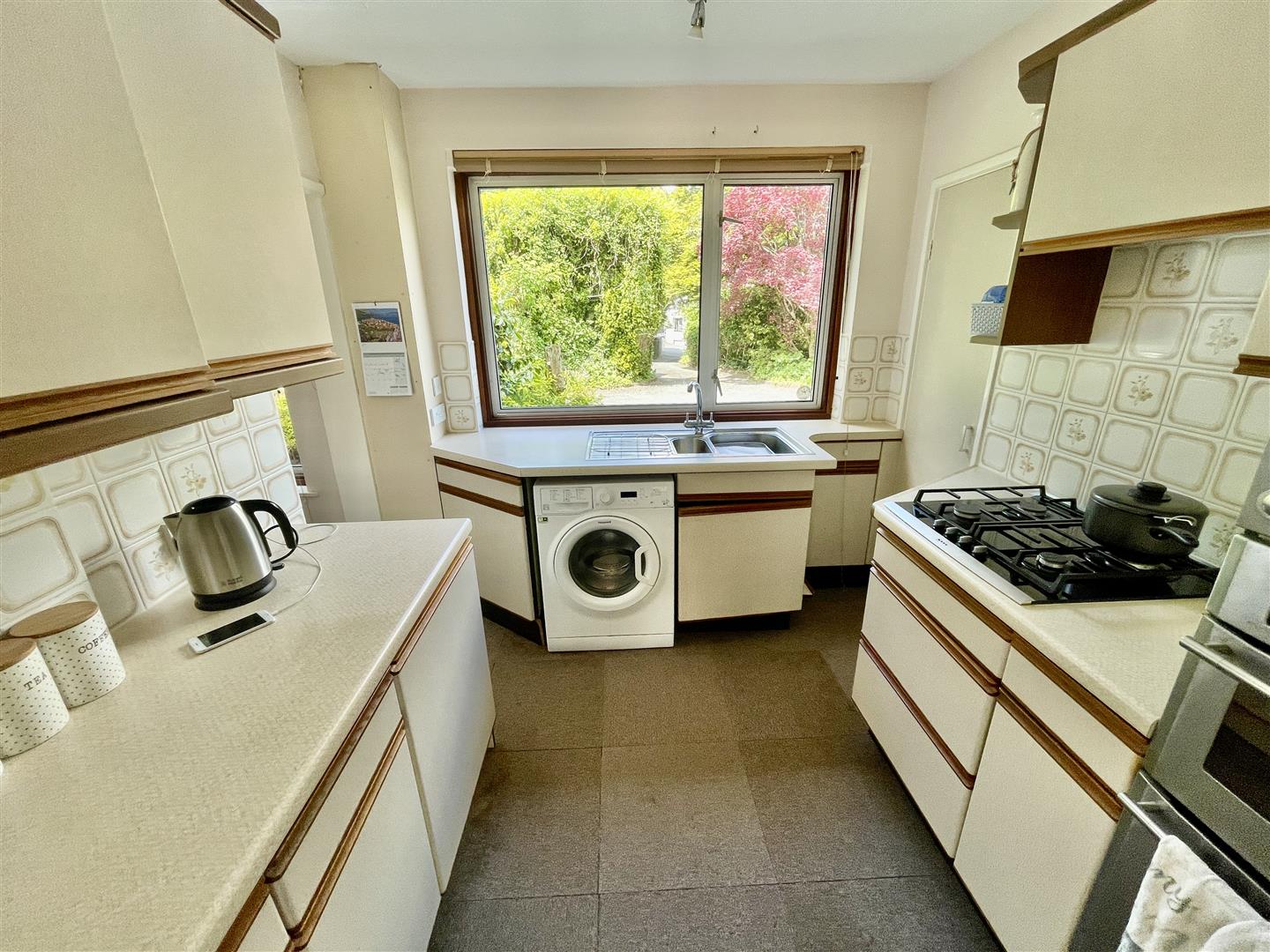 Cupboard housing the British Gas boiler servicing the central heating and domestic hot water. Kitchen fitted with fridge, oven, four ring gas hob, one and a half bowl sink unit and sliding door to:
