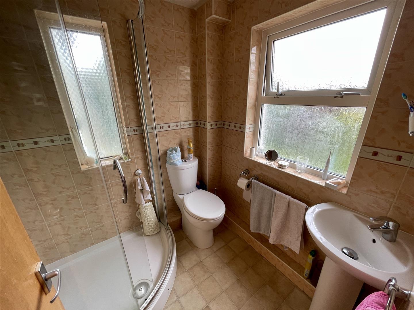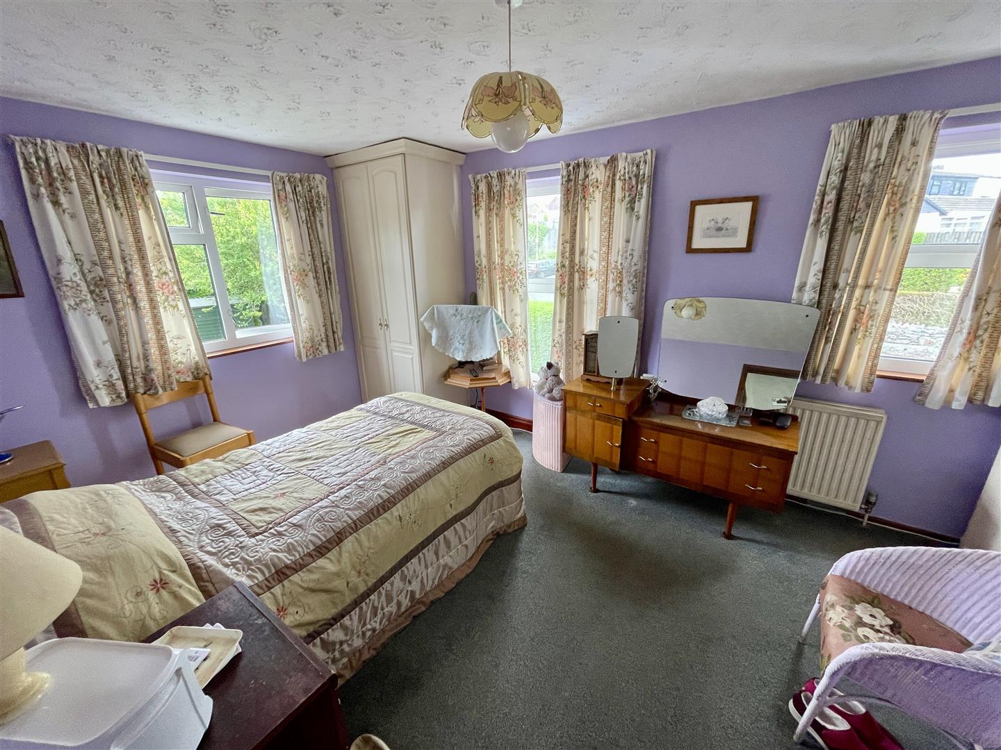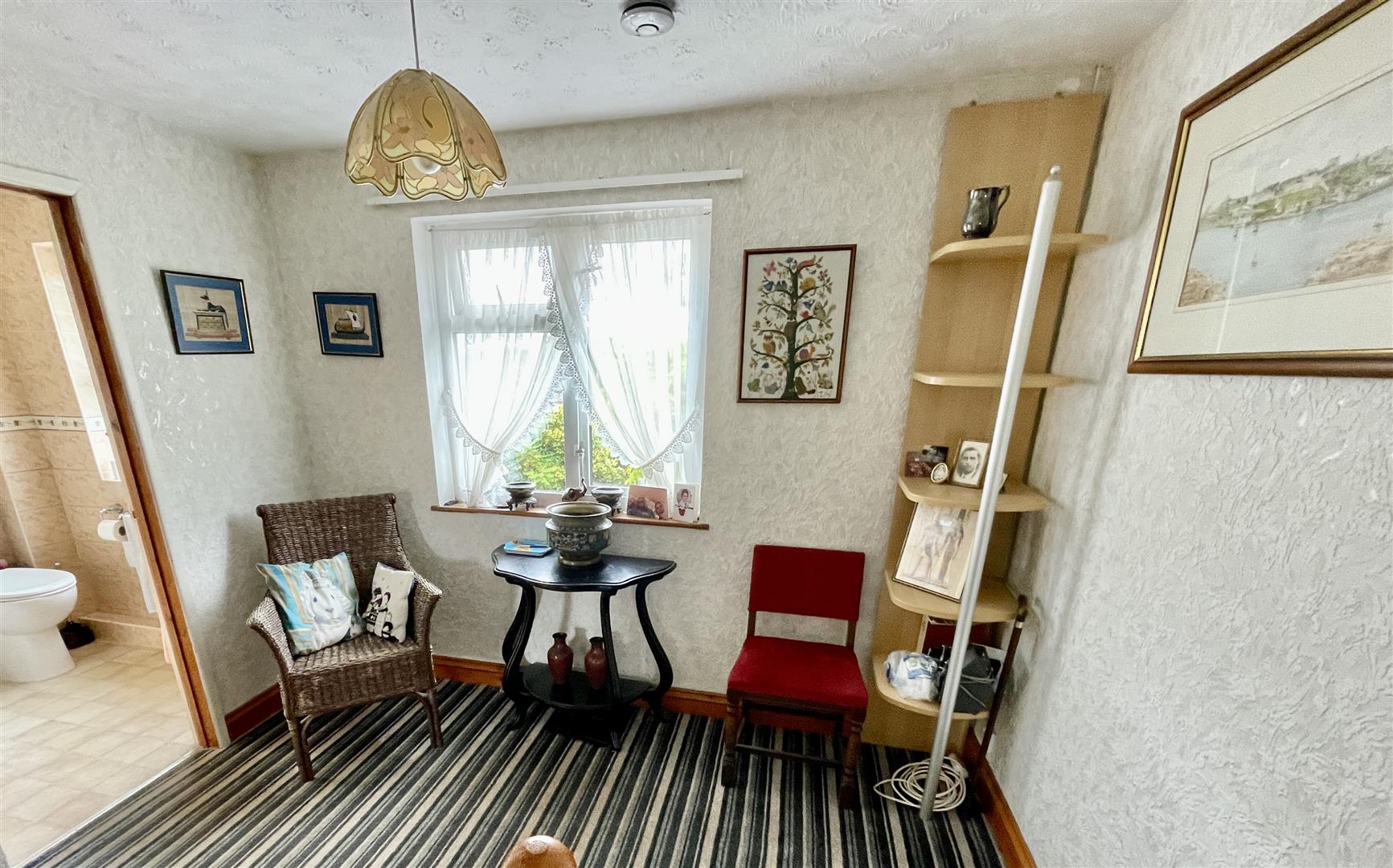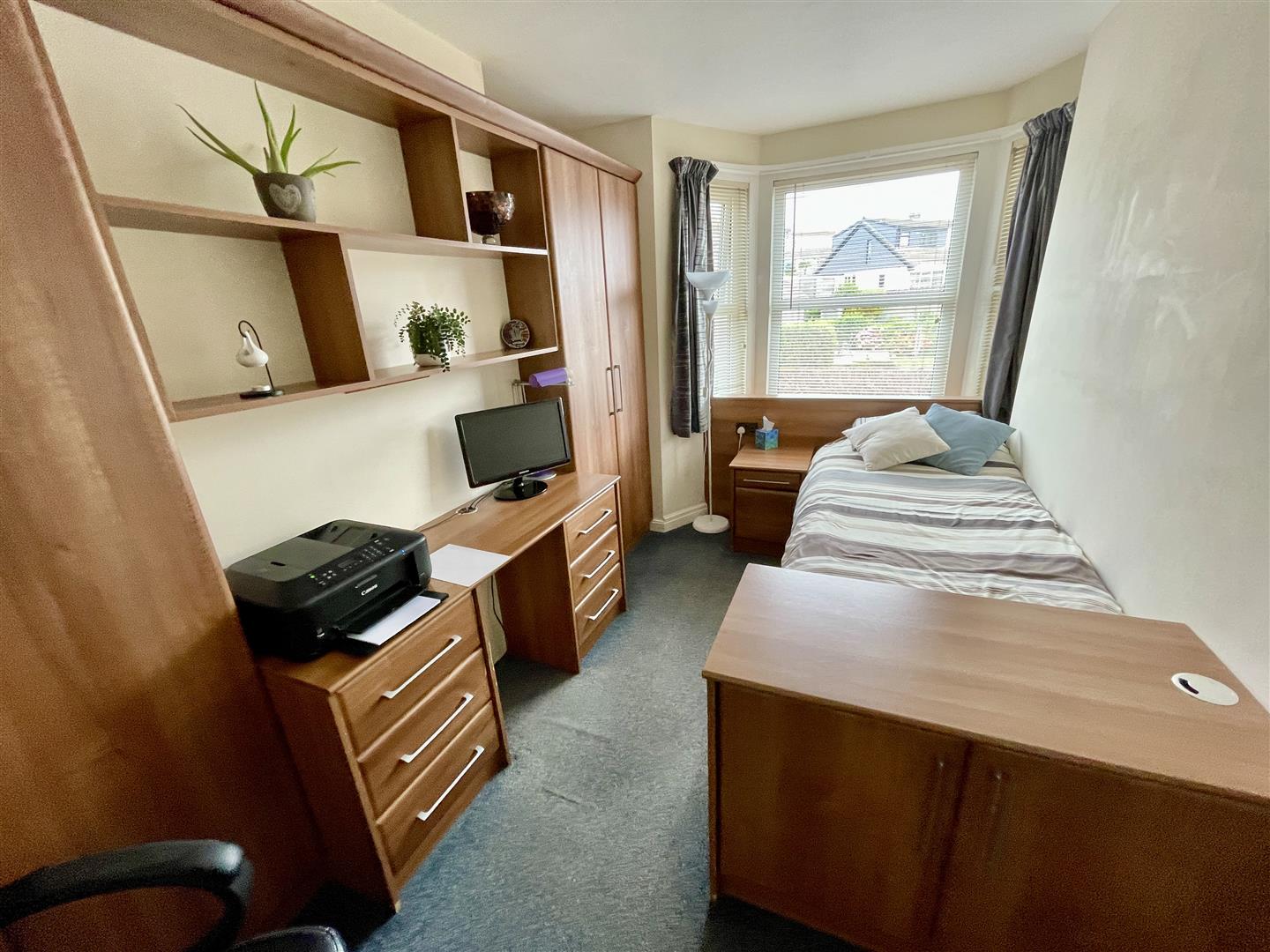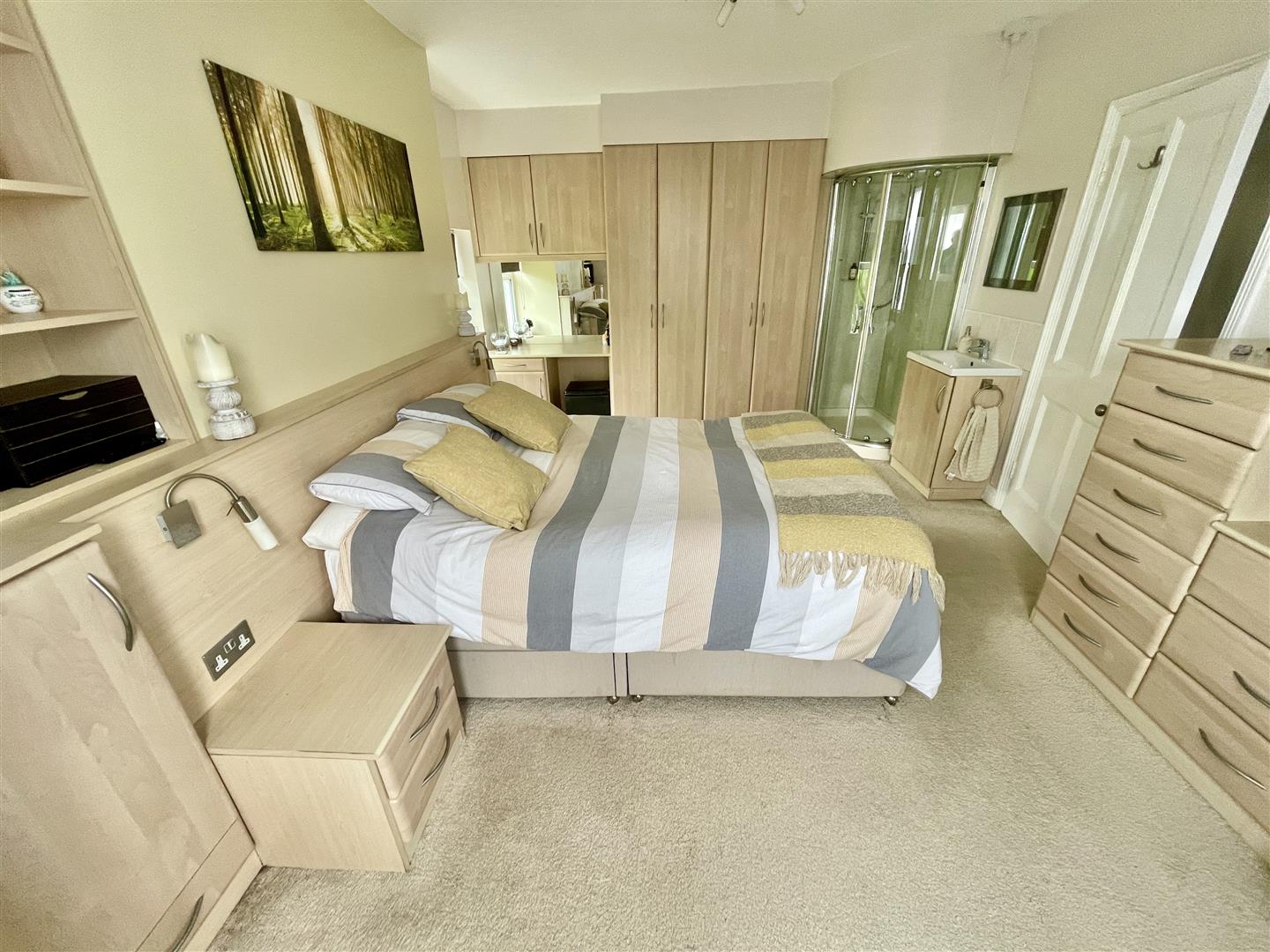 Bay window to the front and further window to the side. Range of quality built in bedroom furniture. Vanity wash hand basin. Corner tiled shower with Mira Sport electrically heated shower.