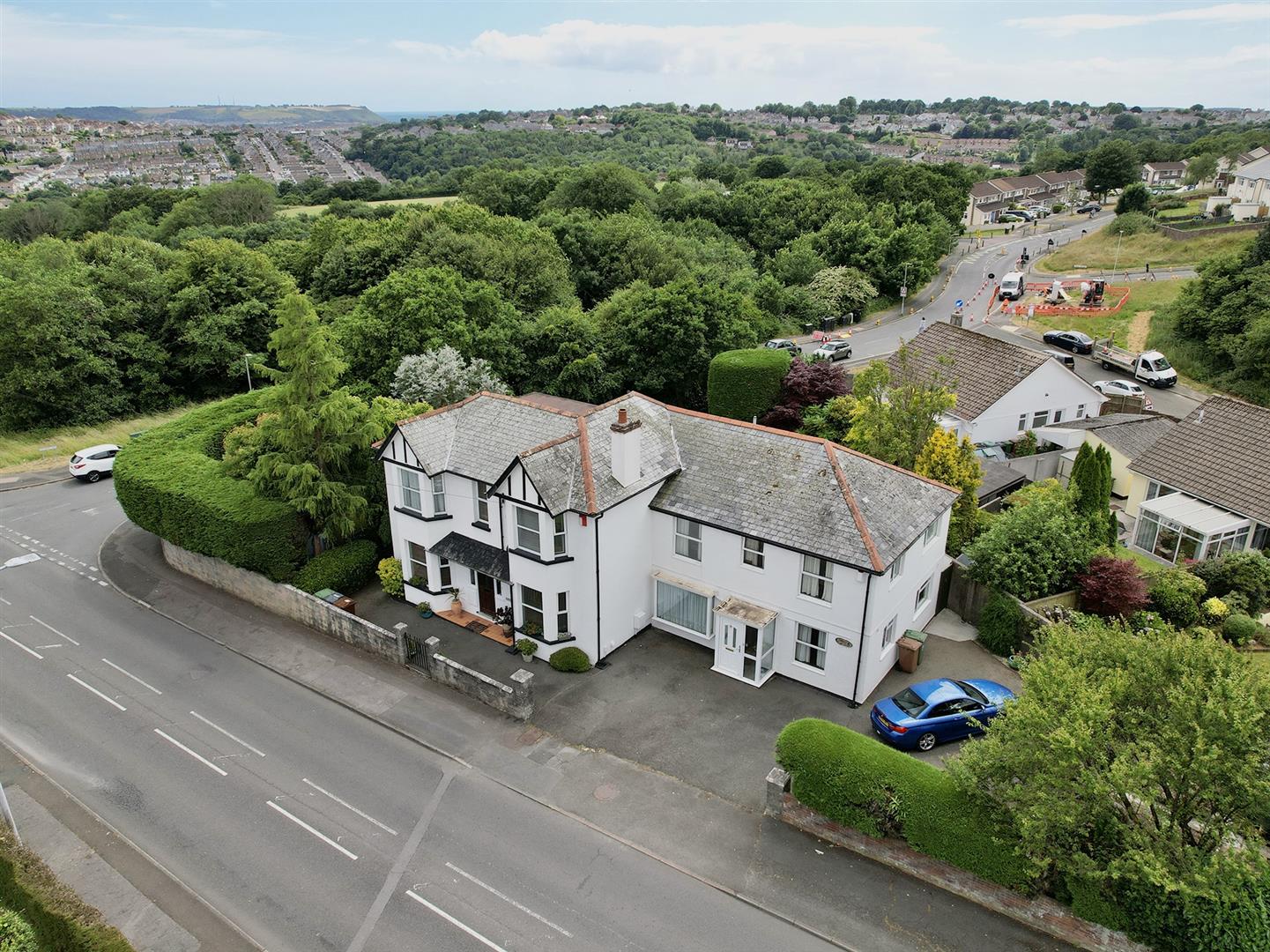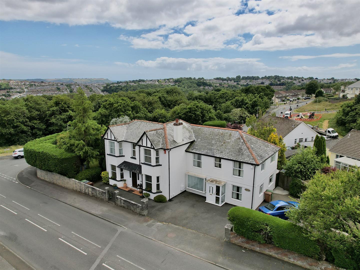 A substantial detached residence 'Hillcrest House' built c.1929 offering generously proportioned family accommodation. Comprising three reception rooms, quality modern fitted integrated kitchen, downstairs WC, five bedrooms and a family bathroom. Adjoining is the annexe known as 'Hillcrest Lodge' built in the 1980's, a self contained two storey home comprising porch, hall, generous size lounge, dining room and spacious fitted kitchen/breakfast room. Large plot with parking for five plus vehicles, good size wrap around informal gardens to the south and west. Kitchen garden.
