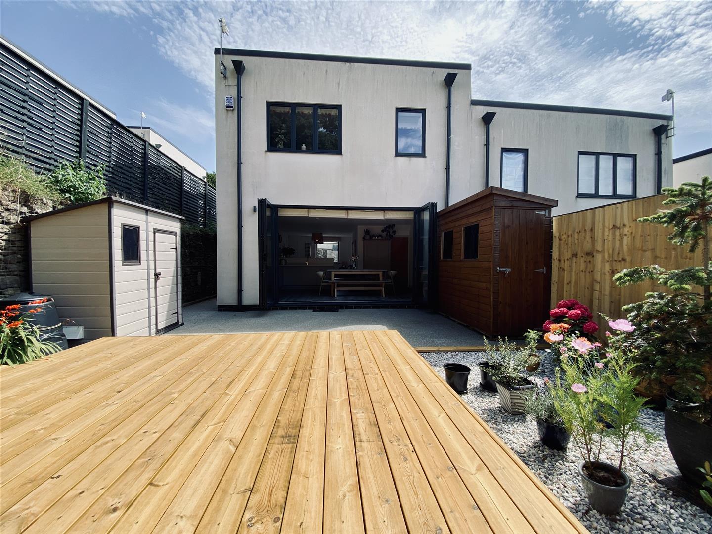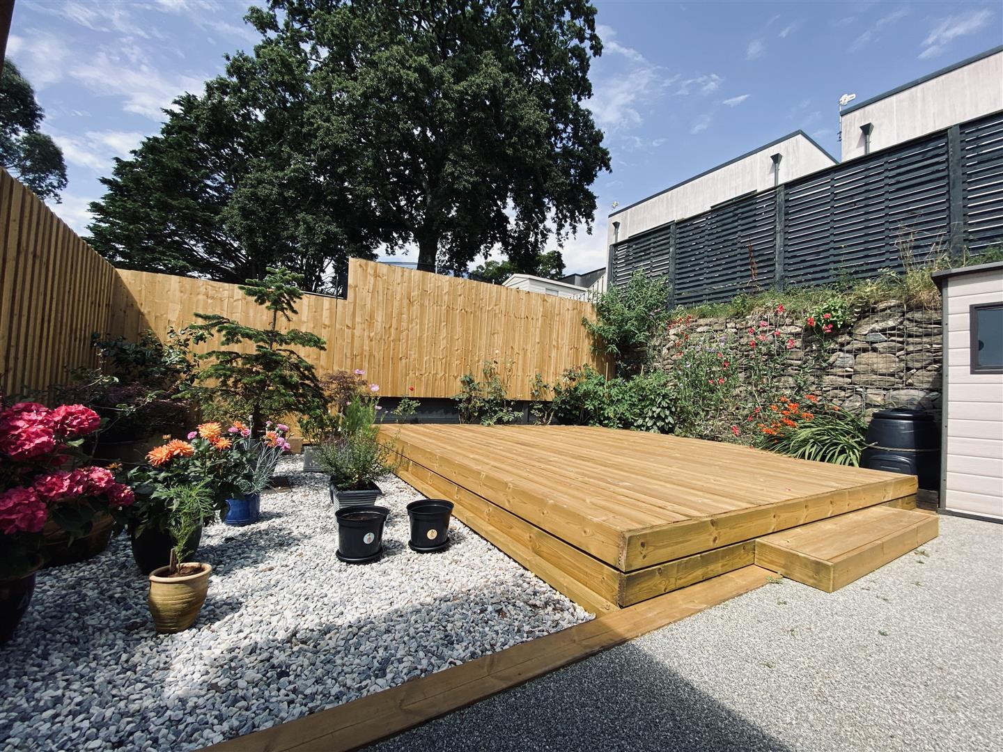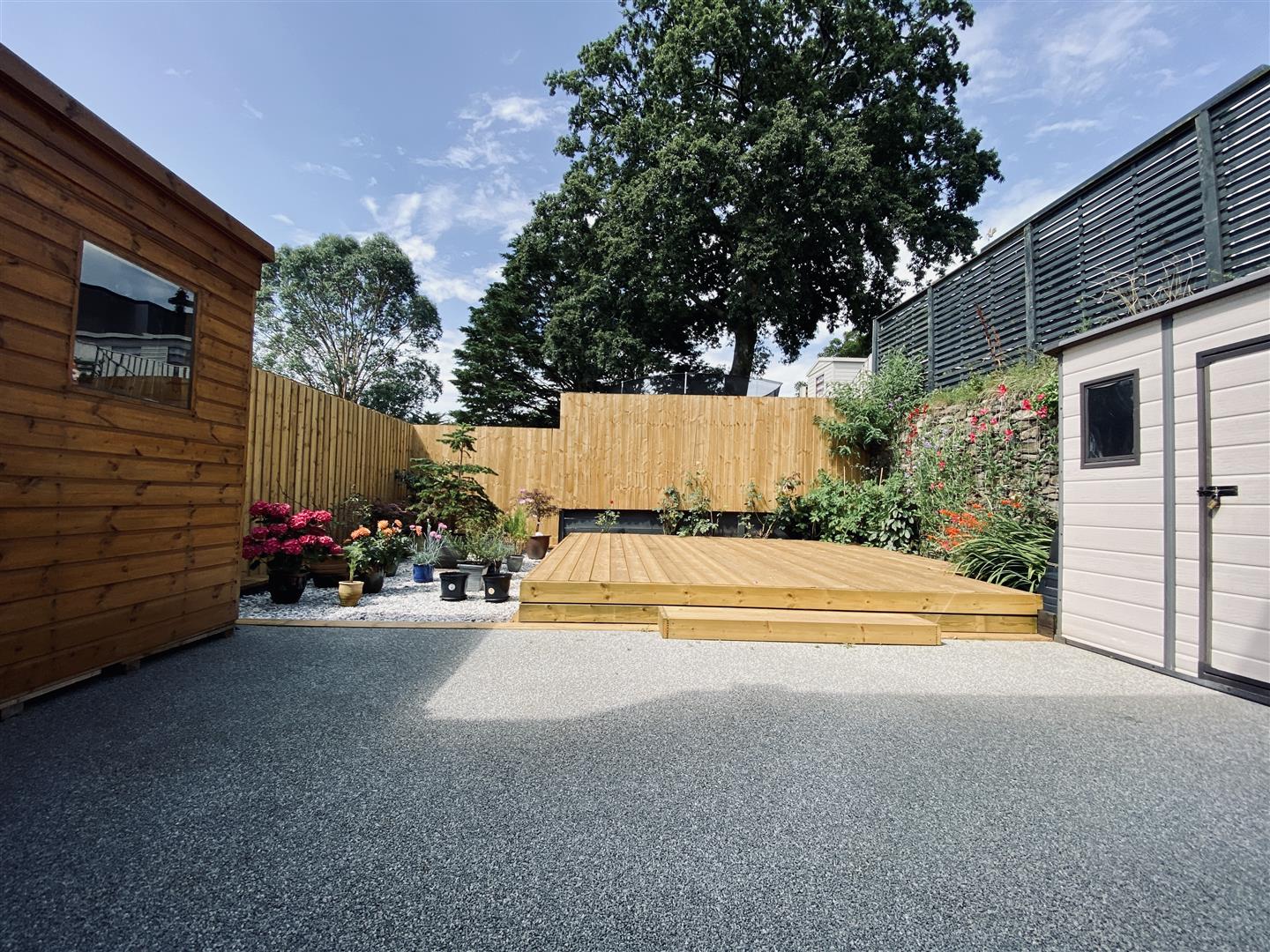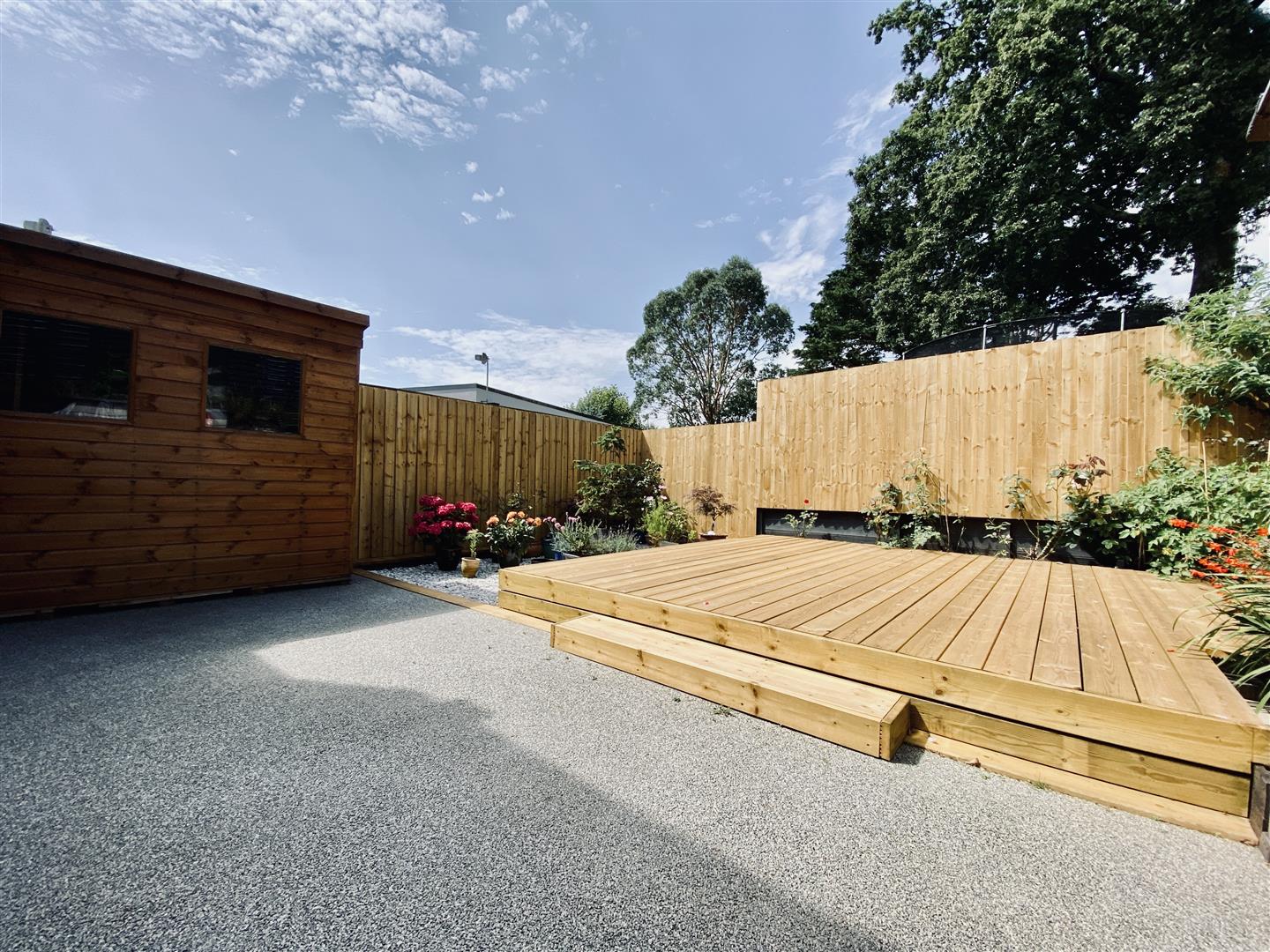 The property is approached via a brick paved driveway allowing off road parking for a couple of vehicles. Path runs alongside the property giving access around to the rear garden. The rear garden has been landscaped with a resin patio seating area and a newly fitted raised decking with shrub borders running along two sides. Outside light. Outside tap.