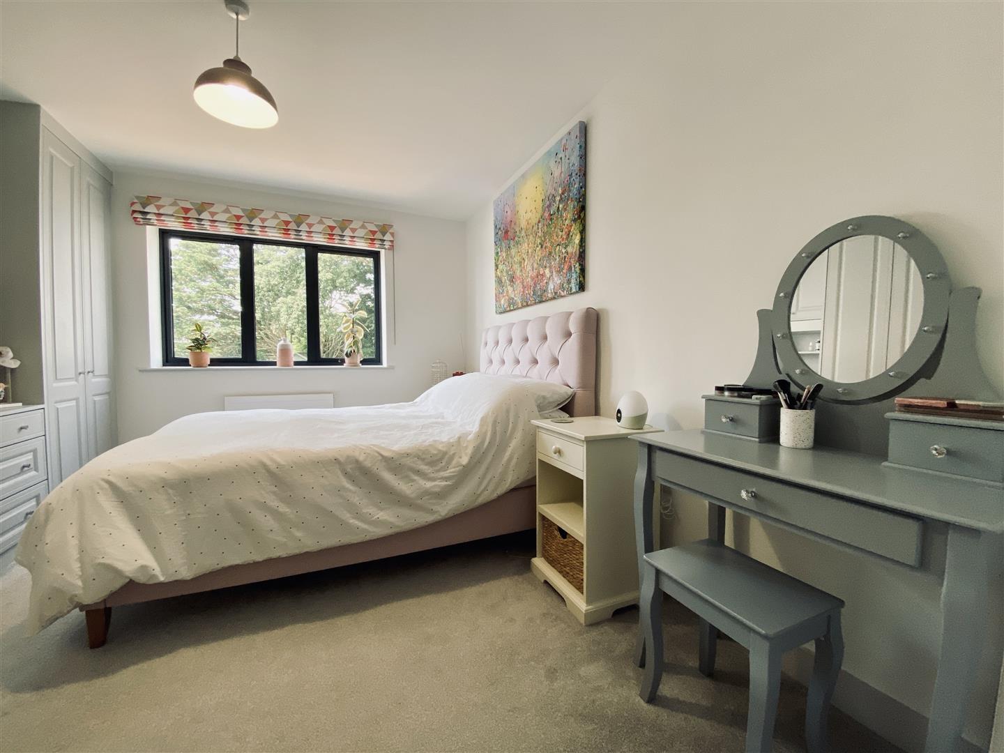Fitted twin wardrobes, chest of drawers and overhead storage unit with inset shelving. uPVC double glazed window to the rear overlooking the garden. Door opening up into the en suite.