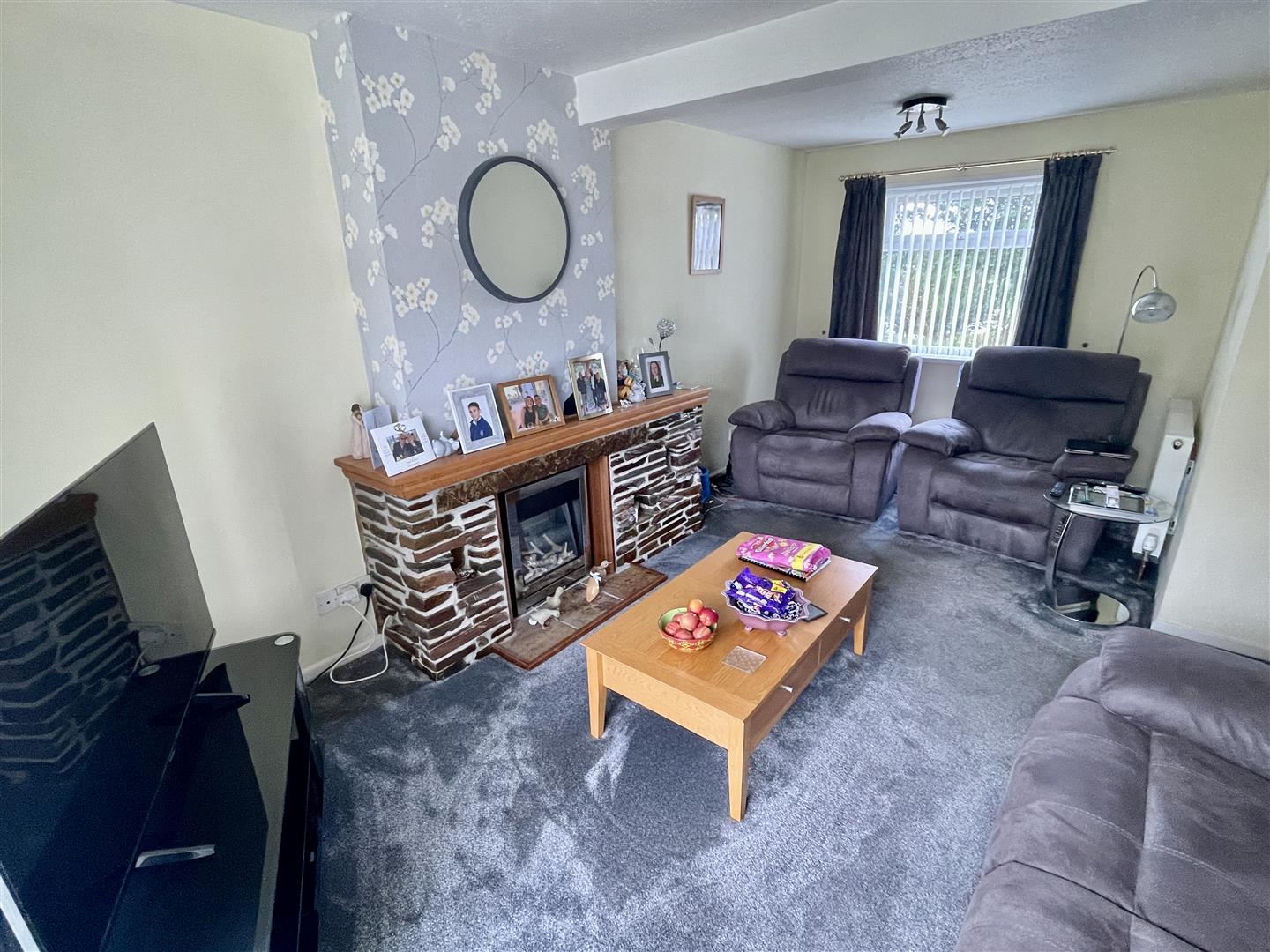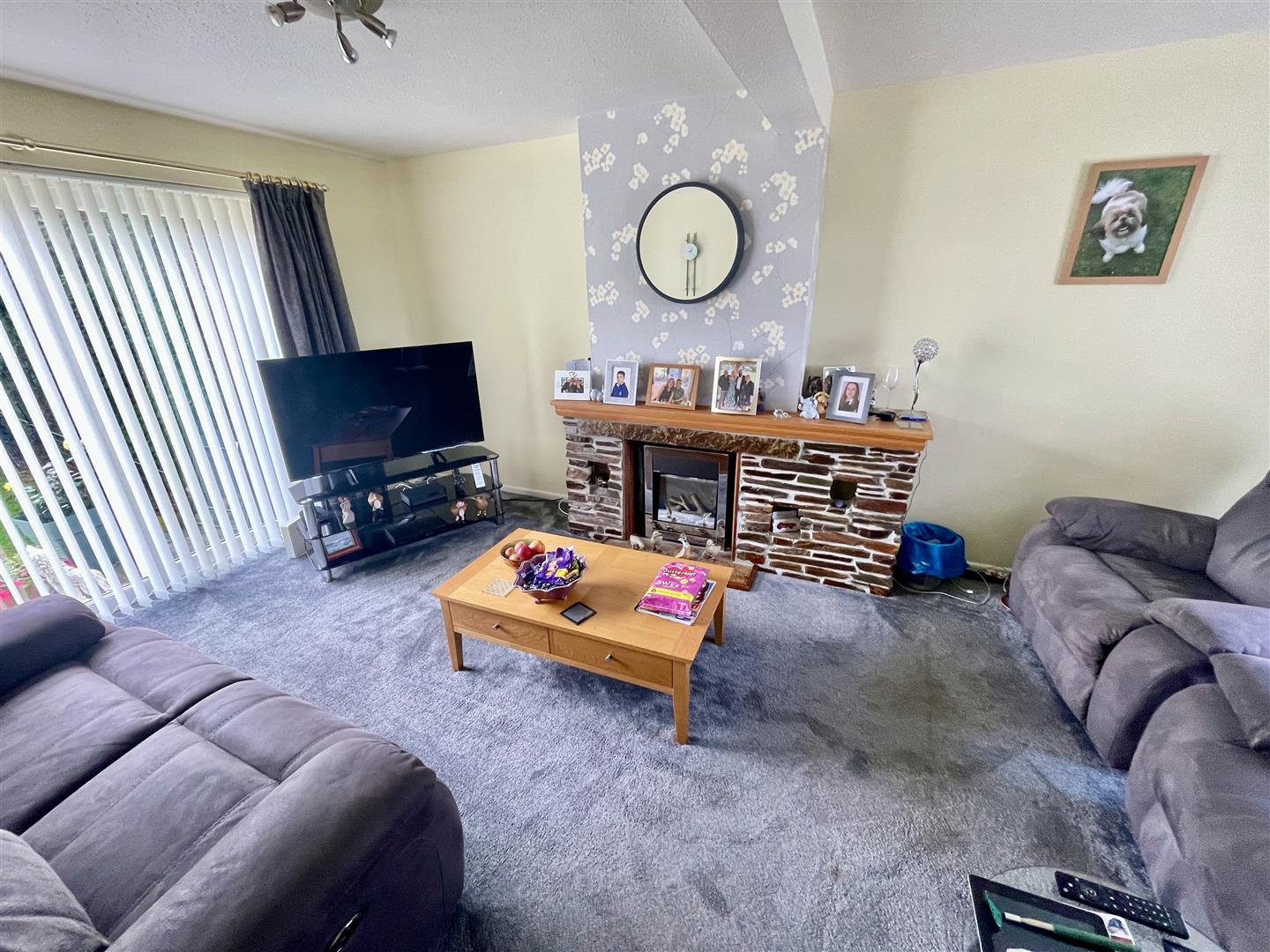 Window to the front and patio style door and window overlooking and opening to the rear garden. Focal feature fireplace with stone surround and log effect gas fire.