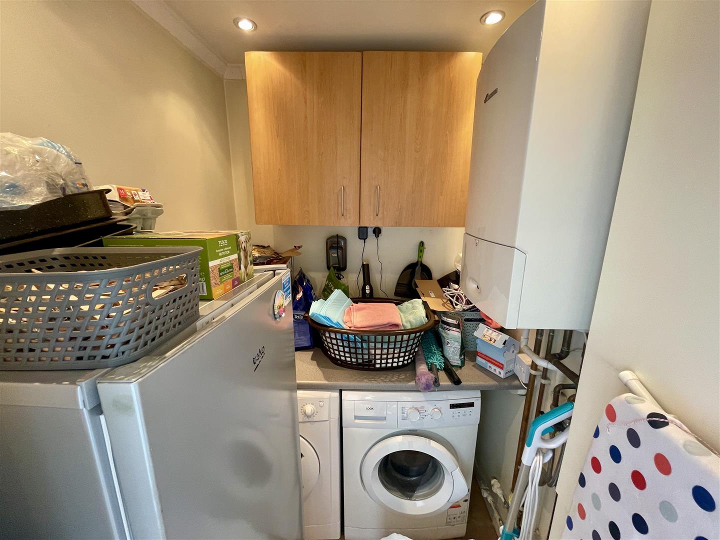Work surface with space and plumbing under suitable for automatic washing machine. Wall mounted Worcester gas fired boiler servicing the central heating and domestic hot water.