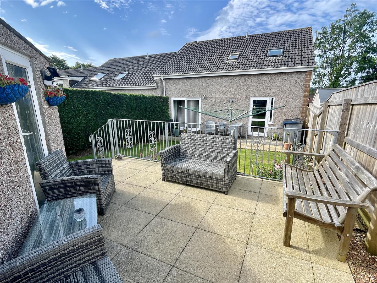 A path leads up to the front door with areas of lawn to either side and a number of ornamental bushes, shrubs and plants. To the rear, a good size enclosed back garden with fence and hedge boundaries. Wide paved patio. Two areas of lawn. Borders at the end. A further wide paved patio ideal for alfresco entertaining. Outside water tap. Garden shed.