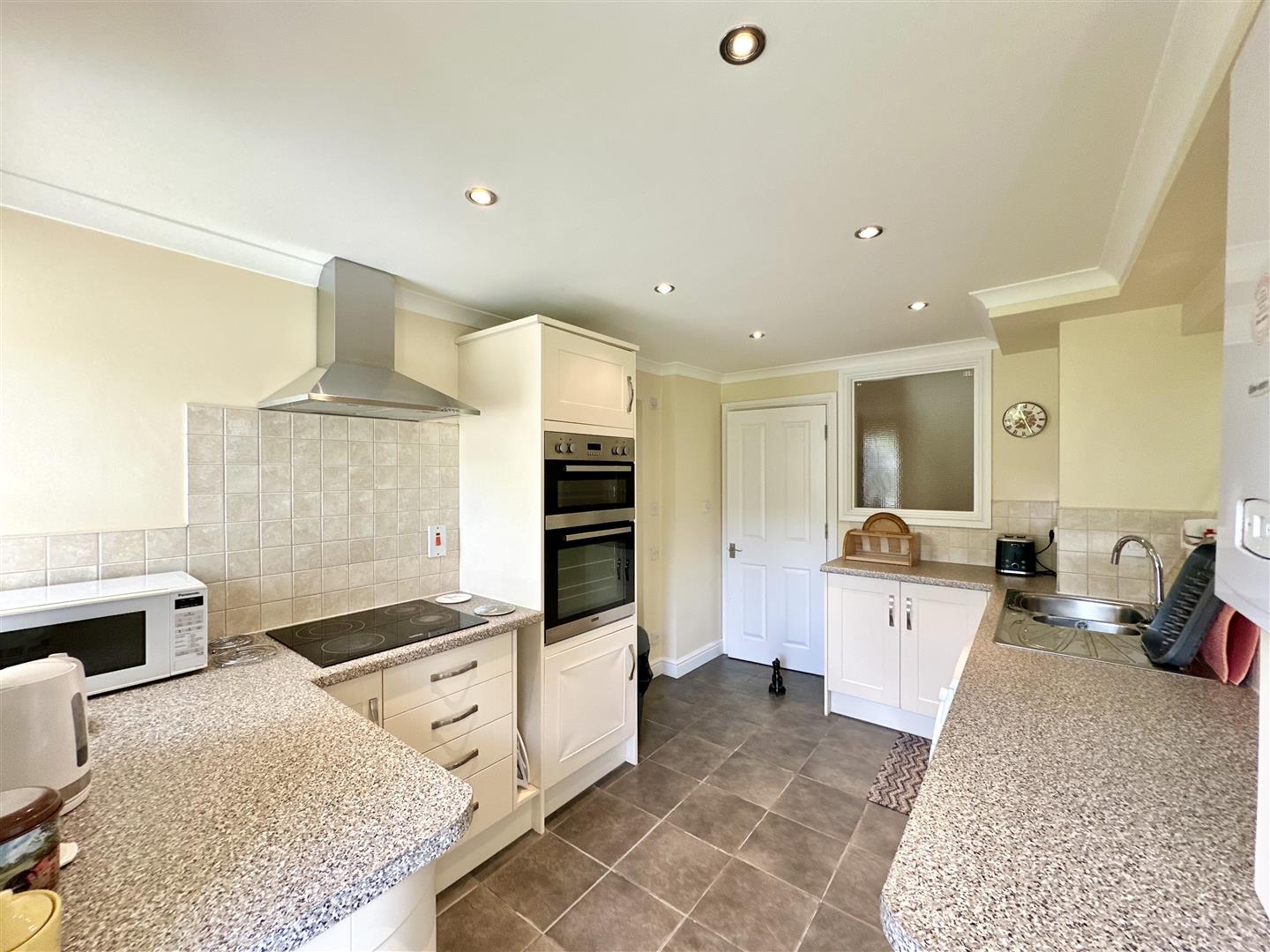 Modern fitted with one and a half bowl sink unit, four ring electric hob, double oven and Gloworm gas fired boiler.