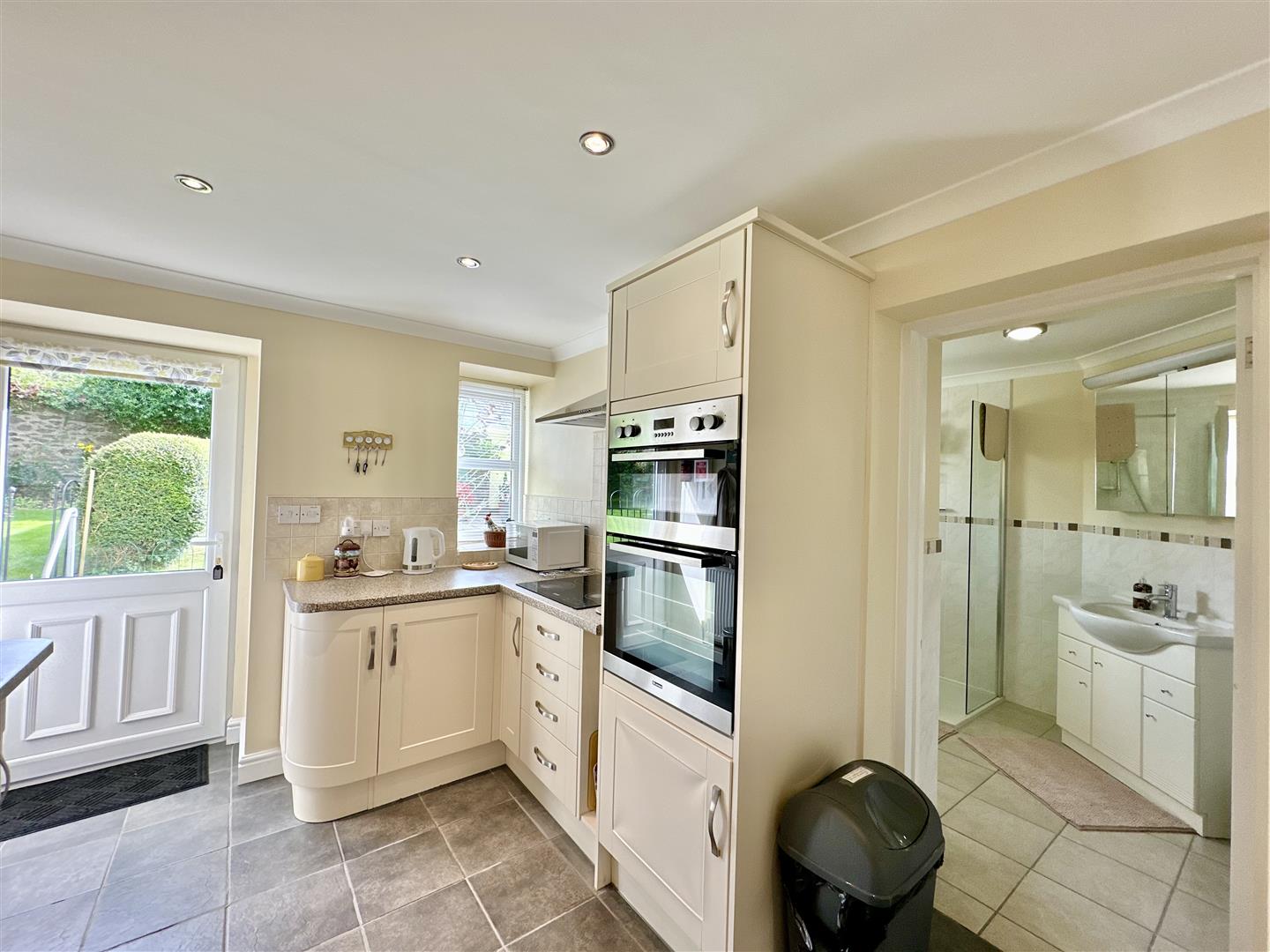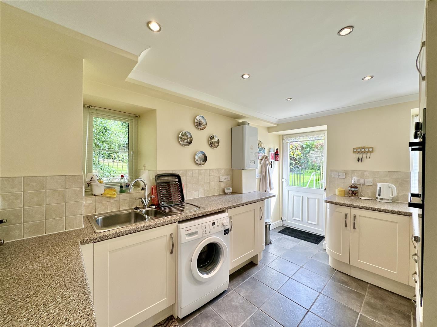 A fitted kitchen with one and a half bowl under mounted sink, a good range of built in storage with granite work surfaces and up stands. Rangemaster Classic 90 cooker, fridge/freezer.