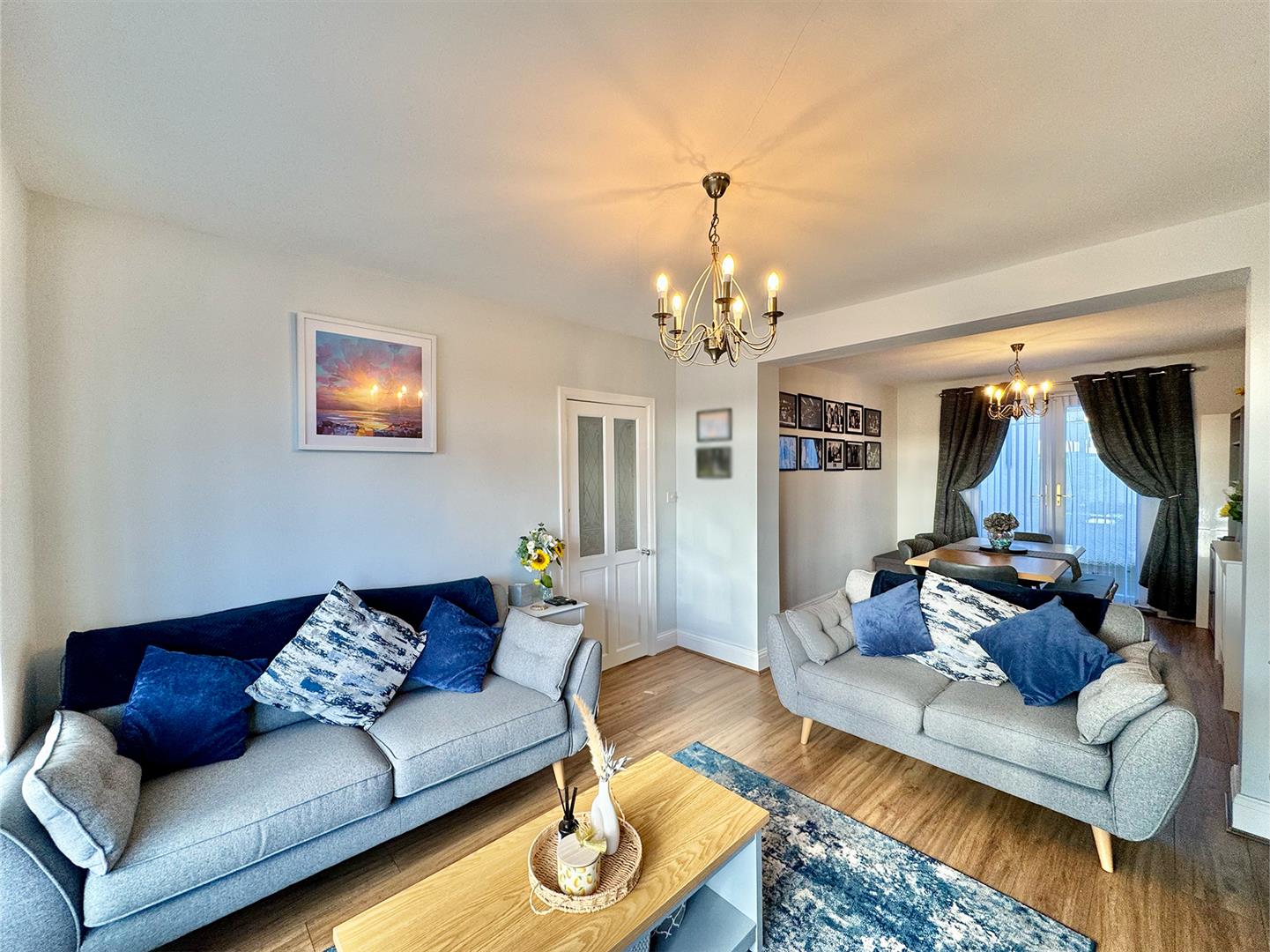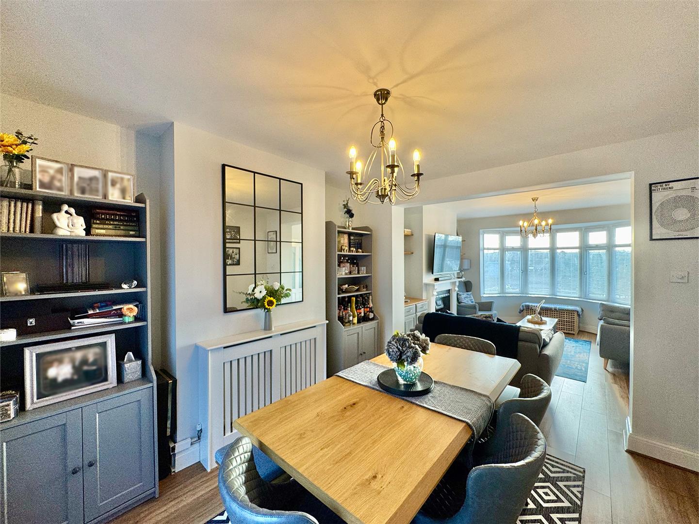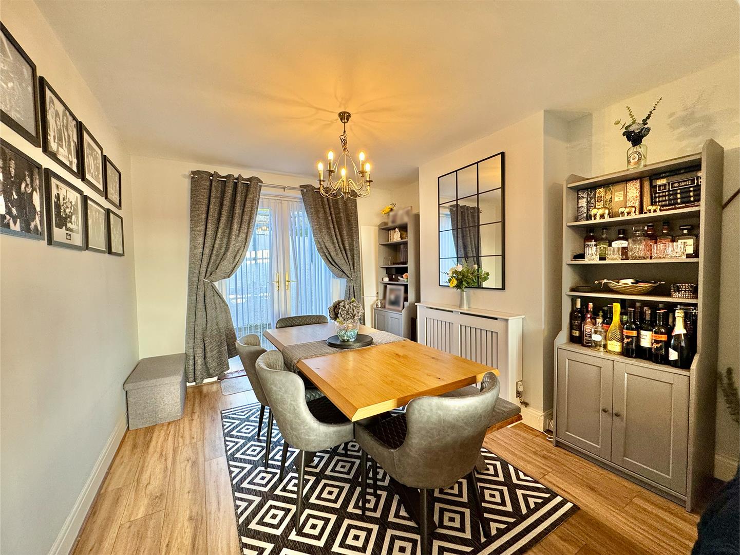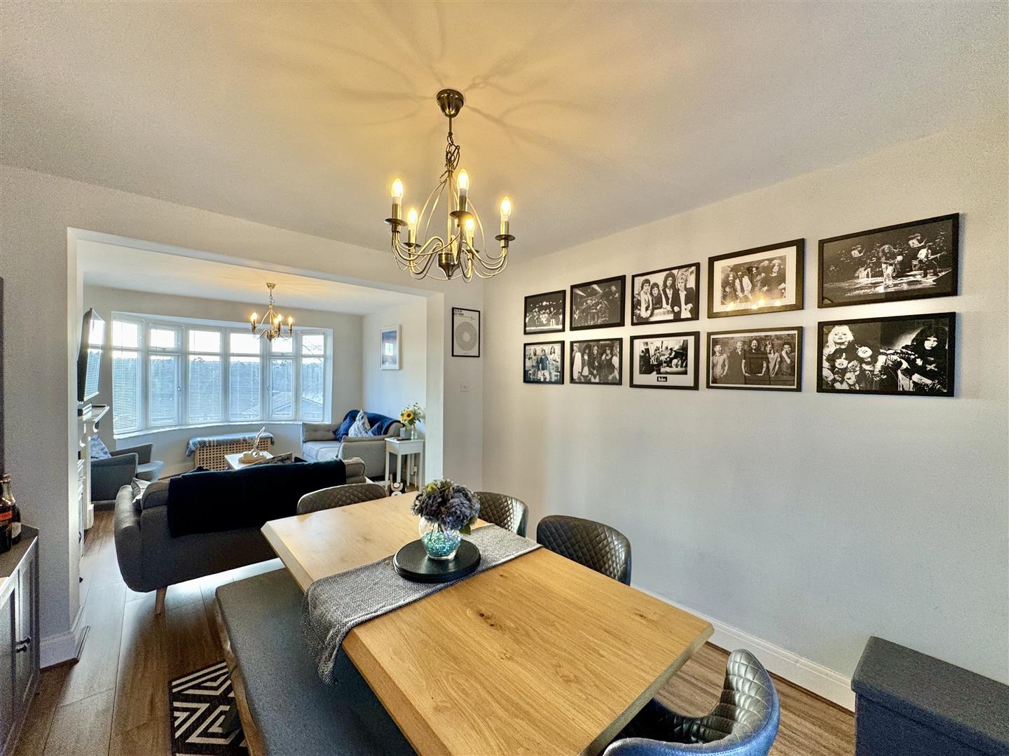 Ample space for a dining table. uPVC double-glazed french doors opening up out to the rear garden & continuation of the wood effect laminate flooring.