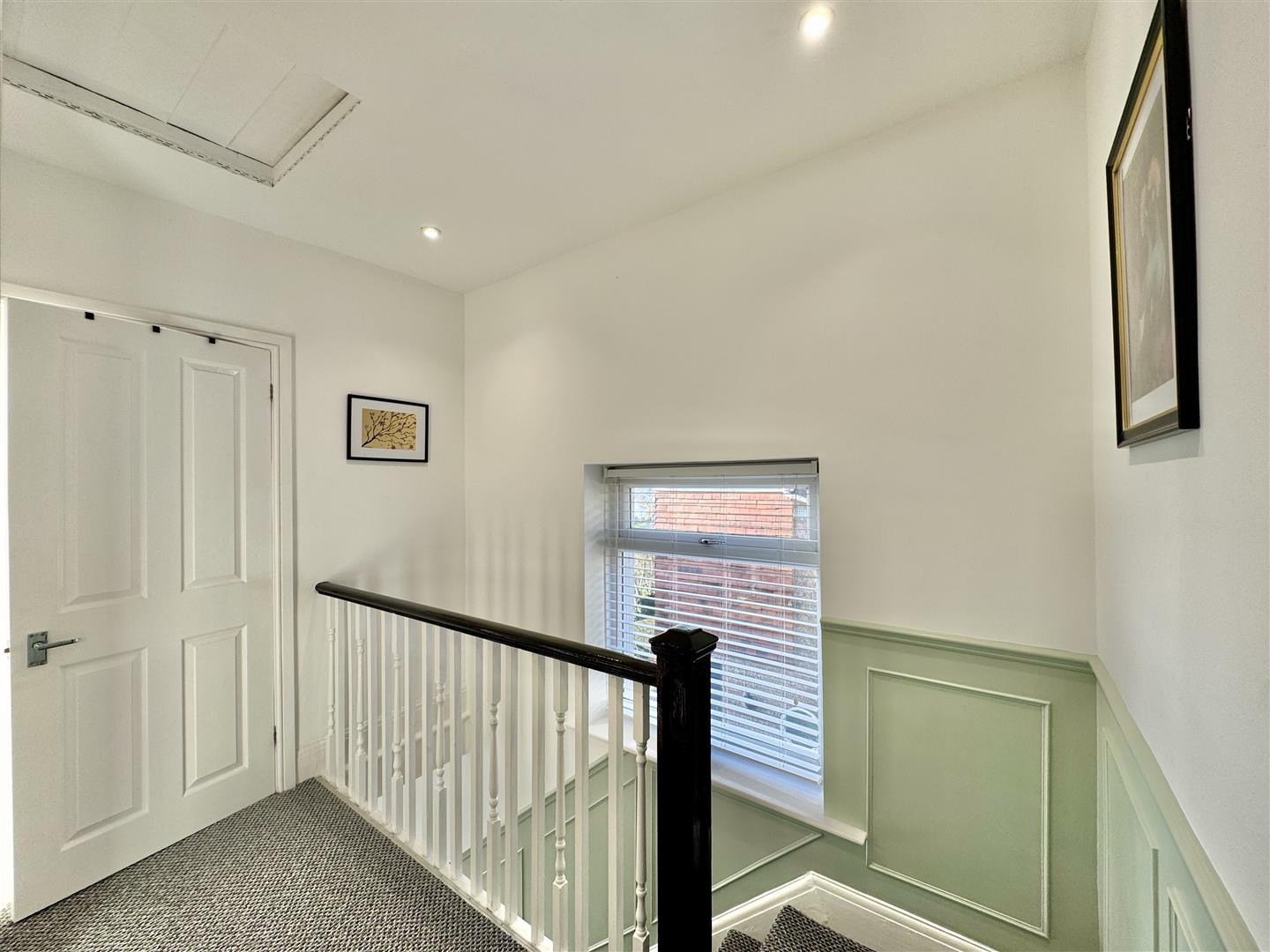 Access hatch to roof void with doors leading off to the bedrooms & bathroom. uPVC double-glazed window to the side.