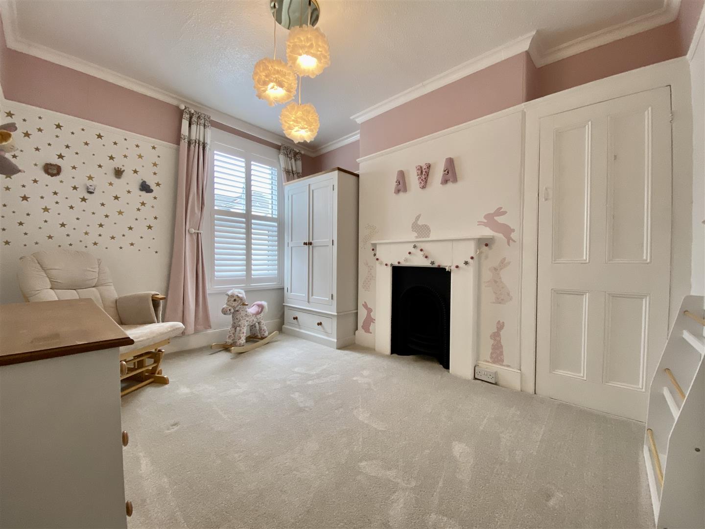 Fitted storage cupboard to one chimney breast recess. Feature fireplace with wooden mantle & surround with cast iron inset. Picture rail. Covings. uPVC double-glazed to the rear with fitted shutters.