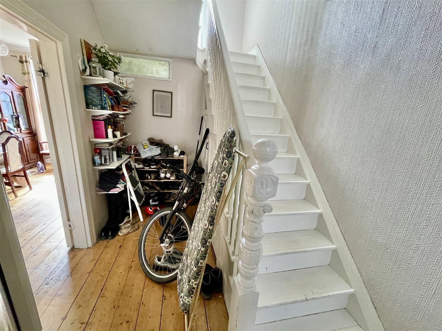 Good storage area. Staircase rises to the first floor. Under-stairs storage cupboards.