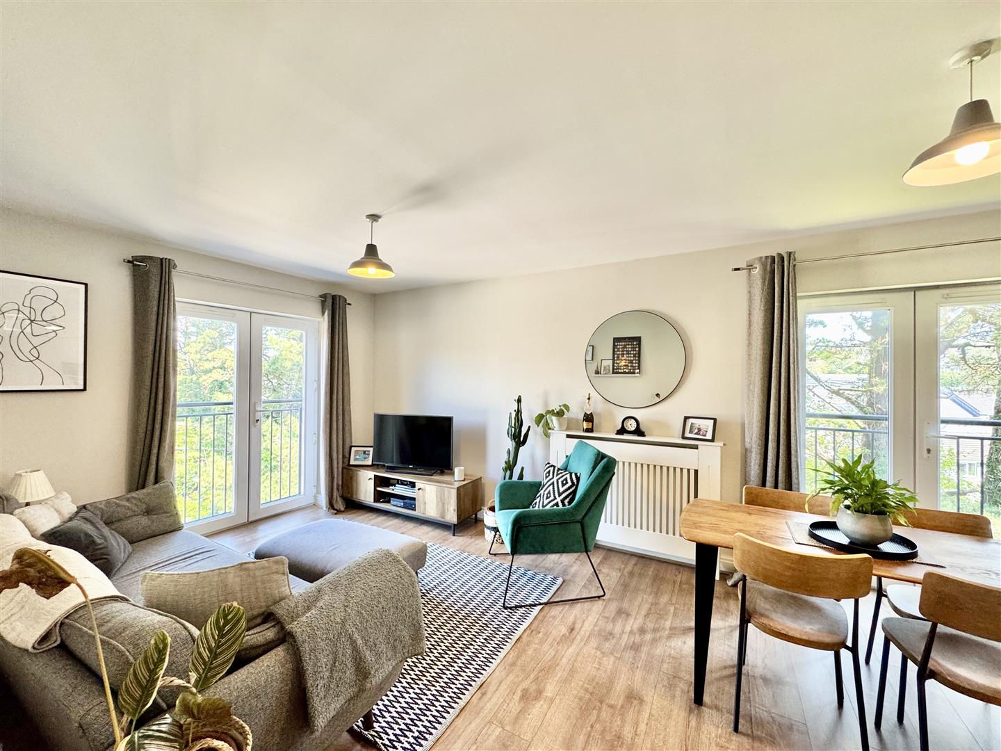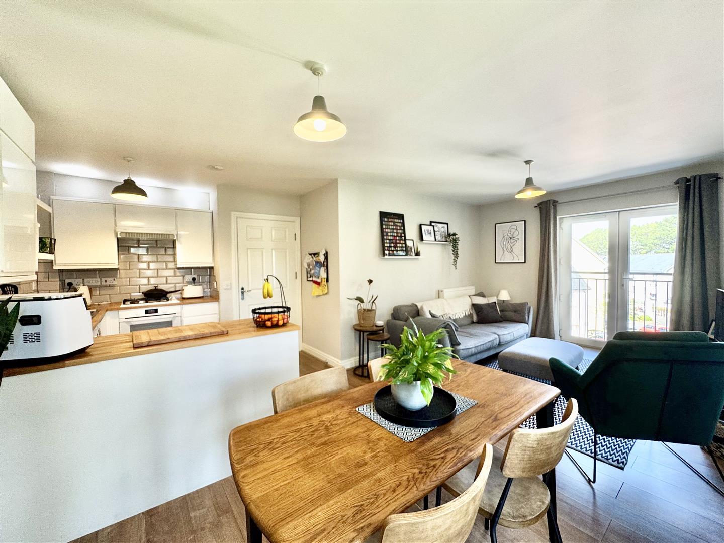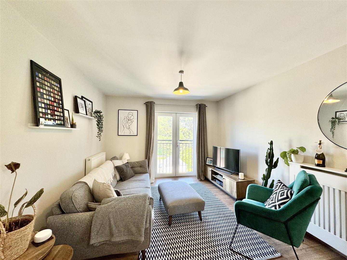 A uPVC double-glazed door with secure access opens into the communal ground floor hall with staircase rising to 3rd floor apartment. Here the apartment itself with central hall & useful storage cupboards, one of which housing the consumer unit. A spacious open-plan living room with 2 sets of French doors & Juliette balcony's with outlook to the side & front over communal gardens & grounds. Incorporating a modern fitted integrated kitchen with a good range of storage cupboards, work surfaces, Ideal Instinct gas fired boiler servicing the central heating & domestic hot water & integrated appliances include an LG washing machine, 1.5 bowl sink unit, Hotpoint 4 ring gas hob with extractor hood over & Hotpoint electric oven under. A generous-sized master bedroom with built-in wardrobe & en-suite shower room with shower, wc & wash hand basin. A second double bedroom with built-in wardrobe & a bathroom with bath, wc & wash hand basin.