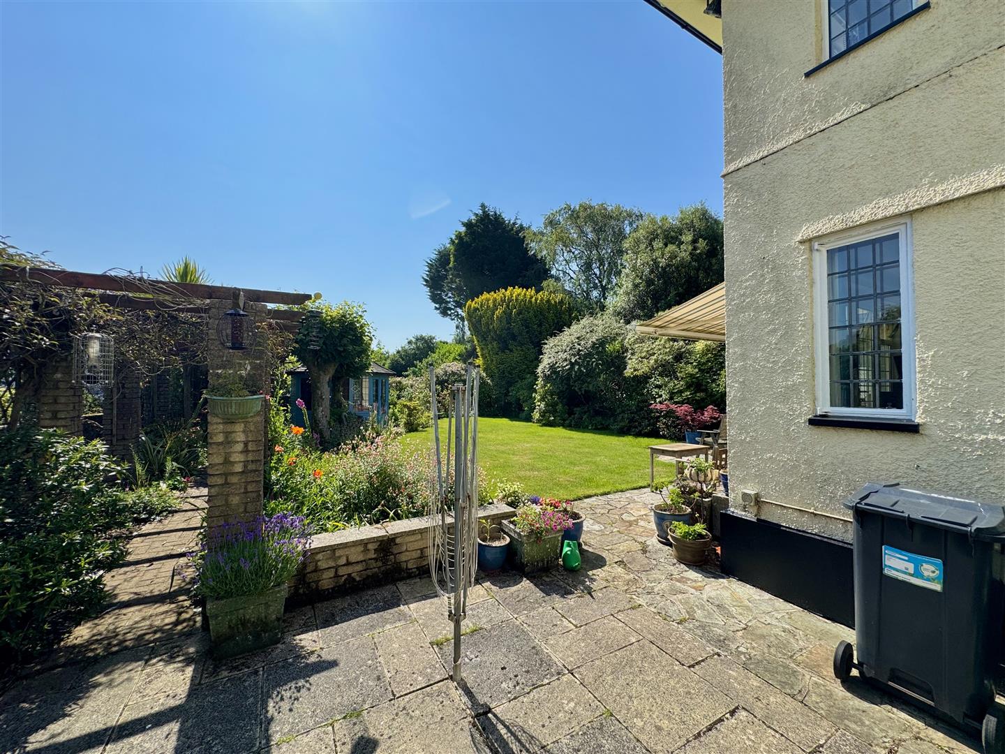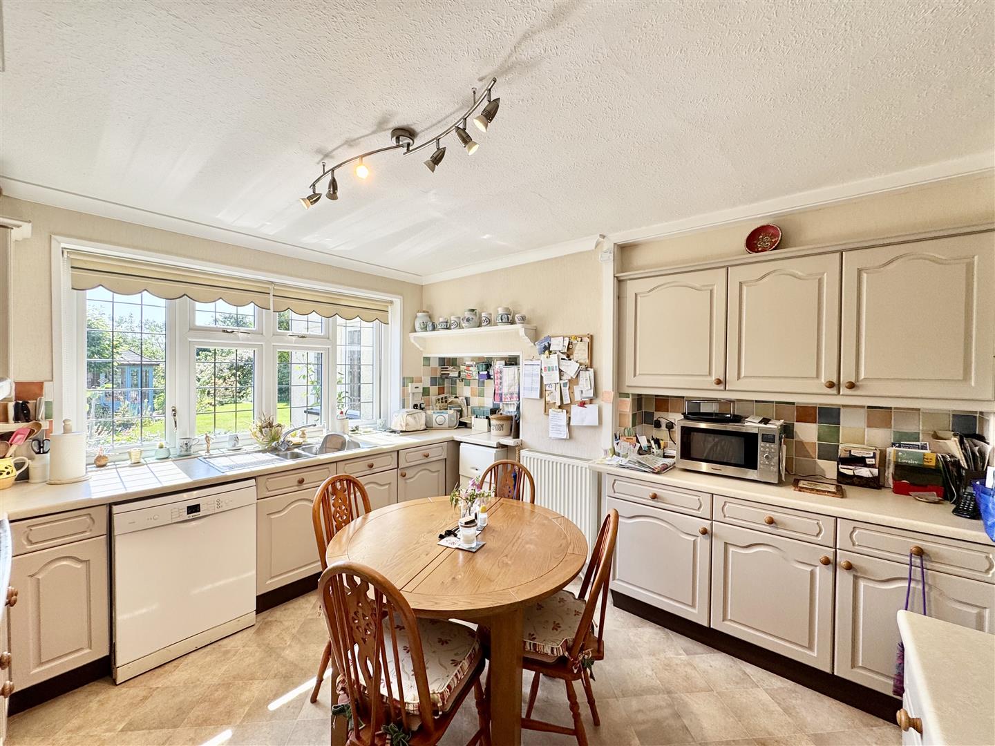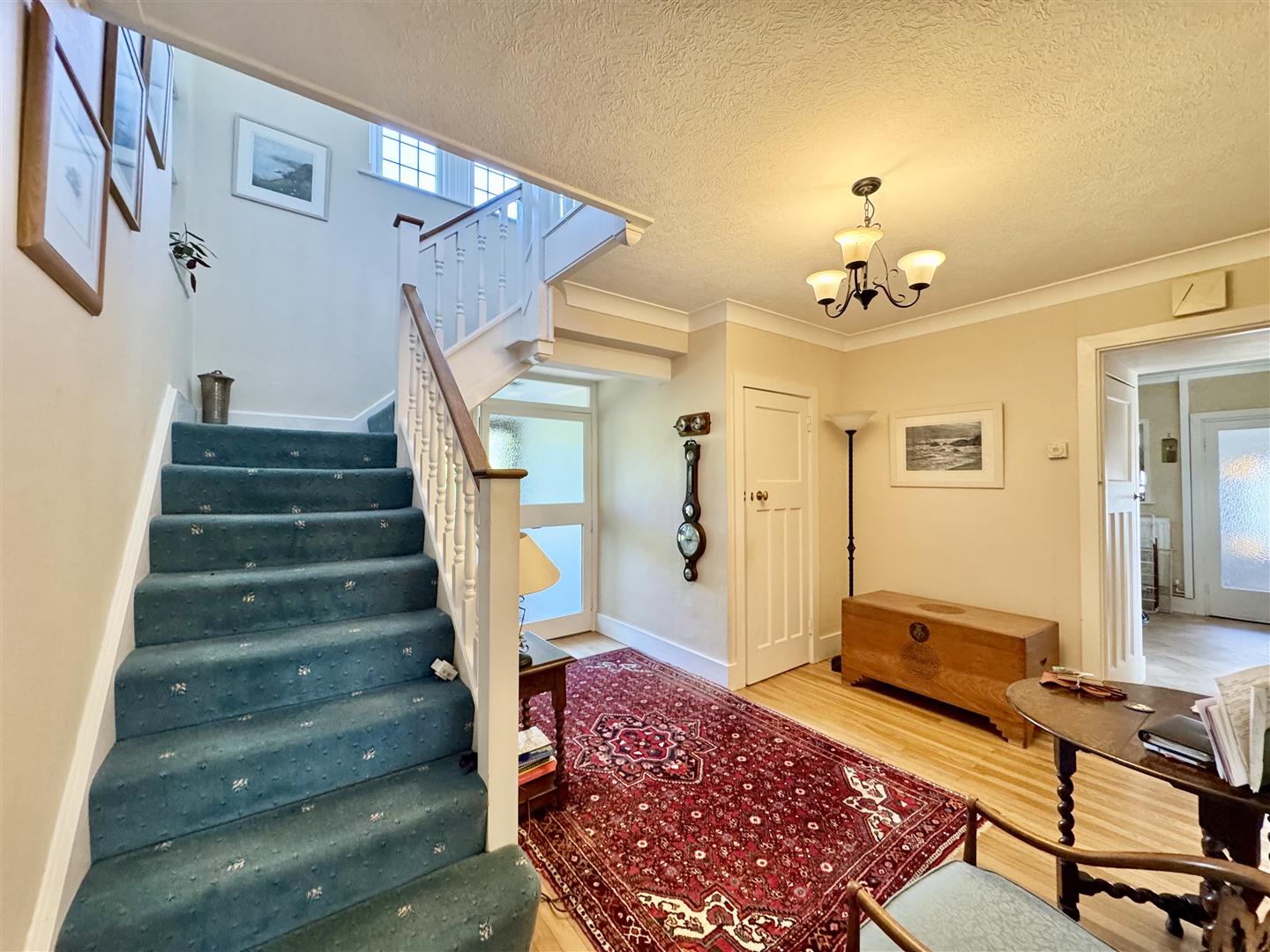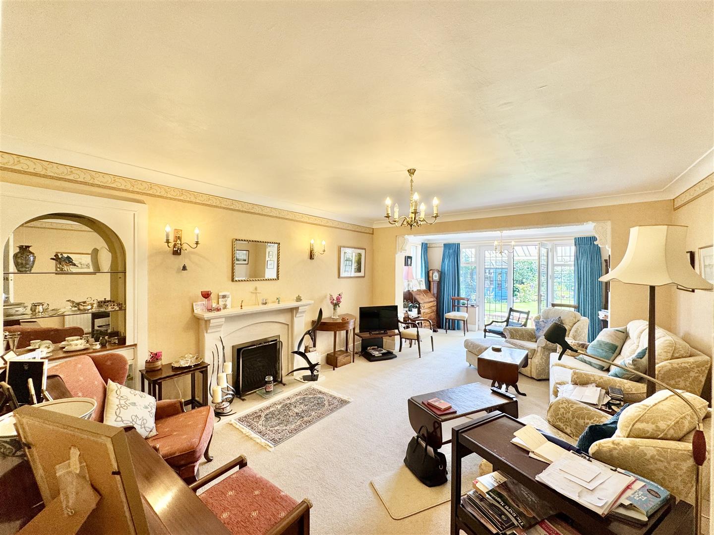 A spacious detached house built in 1935. The property standing on a generous-sized level plot with larger mature gardens. Major works have been undertaken for example re-roofing & a modern Worcester boiler. The accommodation on the ground floor comprises entrance porch, spacious reception hall, downstairs cloakroom/wc, 25ft long dining room, 24ft long sitting room, sun room/study, fitted integrated kitchen with larder off & utility room. A rear porch gives access to the large attached double garage. At first floor level the accommodation comprises a landing giving access to 4 spacious double bedrooms, a large master & guest bedroom both with en-suite shower rooms & a generous-sized family bathroom. Off-street parking to the front. Large attached garage. To the rear a long mature garden with patio, lawn & kitchen garden with fruit cage. Useful sun room & substantial garden store.